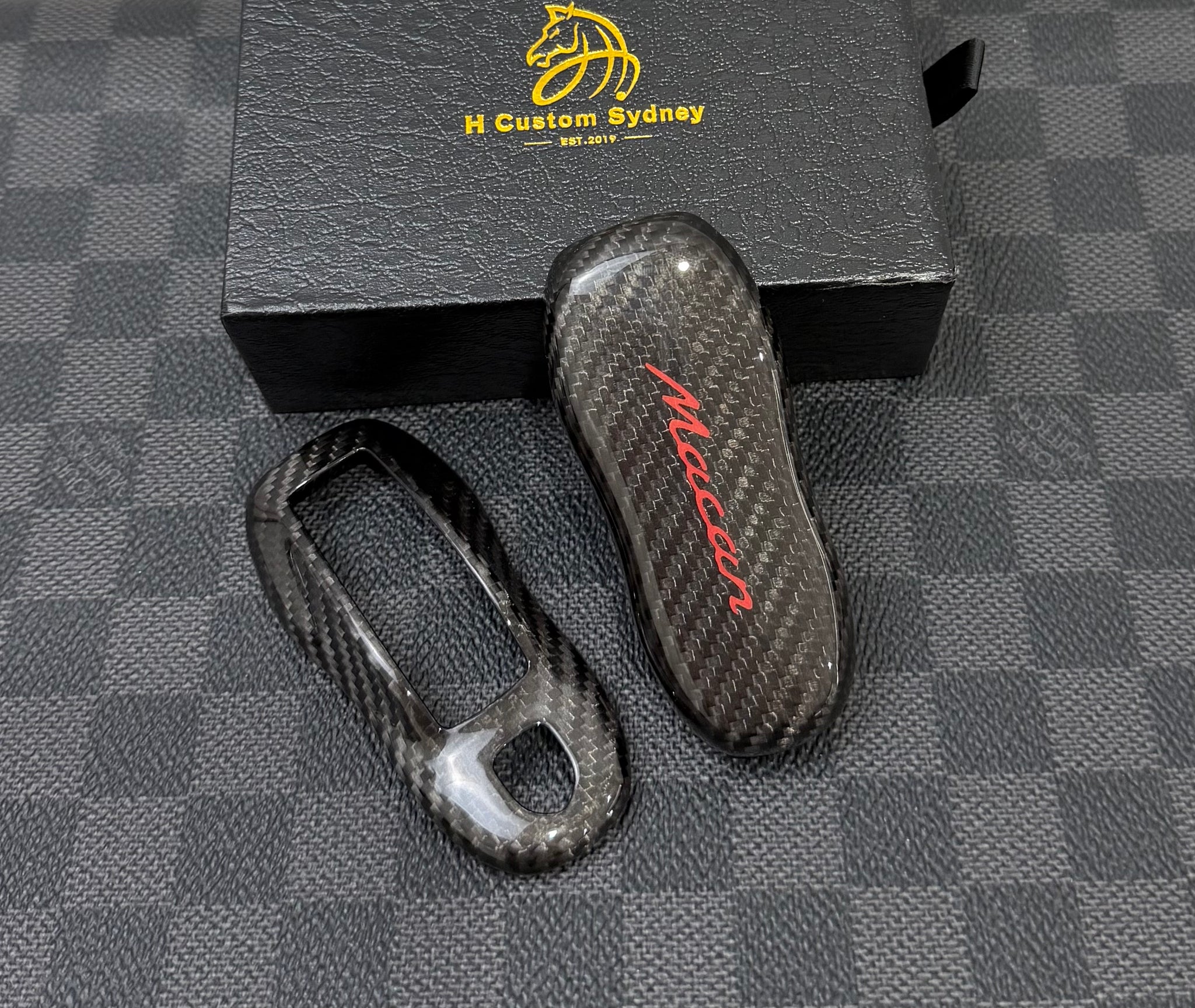 Upgrade your Porsche with the premium carbon fiber key fob cover case.
