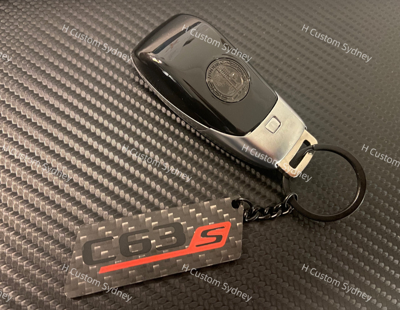 6. C63s Genuine Carbon Fiber Keyring in Gloss Black Finish
